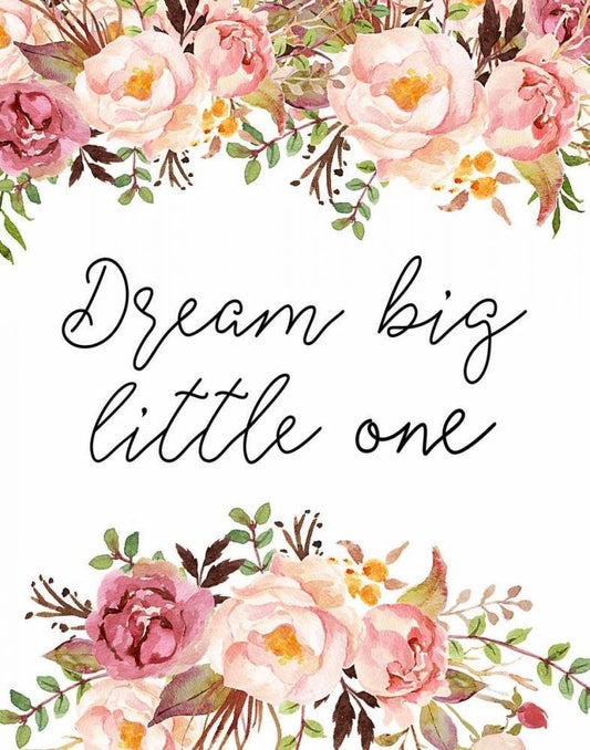 Dream Big Little One Floral White Modern Wood Framed Art Print with Double Matting by Moss, Tara