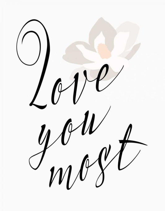 Love You Most - Flower White Modern Wood Framed Art Print with Double Matting by Moss, Tara