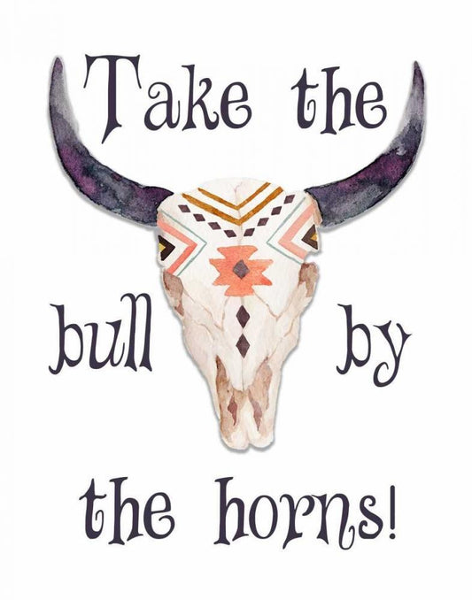 Bull by the Horns White Modern Wood Framed Art Print with Double Matting by Moss, Tara