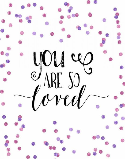So Loved Pink and Purple Confetti White Modern Wood Framed Art Print with Double Matting by Moss, Tara