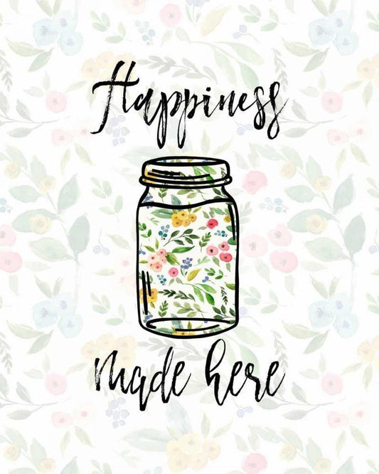 Happiness Made Here White Modern Wood Framed Art Print with Double Matting by Moss, Tara