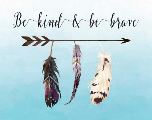 Be Kind and Be Brave White Modern Wood Framed Art Print with Double Matting by Moss, Tara