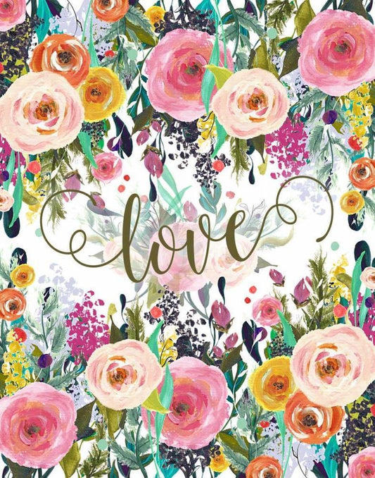 Love Colorful Florals White Modern Wood Framed Art Print with Double Matting by Moss, Tara