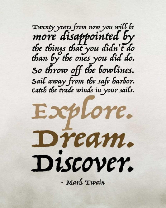 Explore, Dream, Discover White Modern Wood Framed Art Print with Double Matting by Moss, Tara