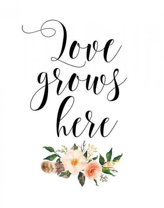 Love Grows Here White Modern Wood Framed Art Print with Double Matting by Moss, Tara