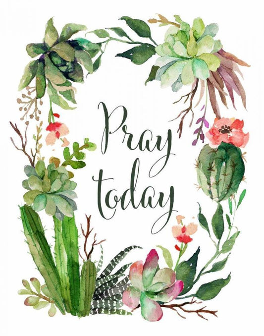 Pray Today Wreath White Modern Wood Framed Art Print with Double Matting by Moss, Tara