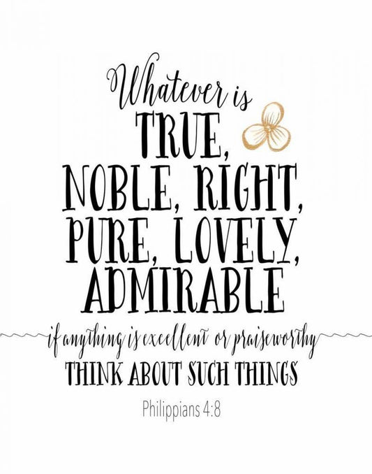 Philippians 4:8 White Modern Wood Framed Art Print with Double Matting by Moss, Tara