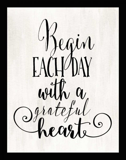 Grateful Heart Cream and Black White Modern Wood Framed Art Print with Double Matting by Moss, Tara