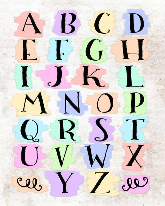 Colorful Alphabet White Modern Wood Framed Art Print with Double Matting by Moss, Tara