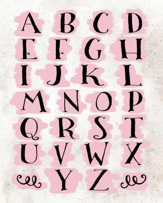 Pink Alphabet White Modern Wood Framed Art Print with Double Matting by Moss, Tara