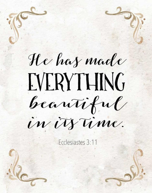 Ecclesiastes 3:11 White Modern Wood Framed Art Print with Double Matting by Moss, Tara