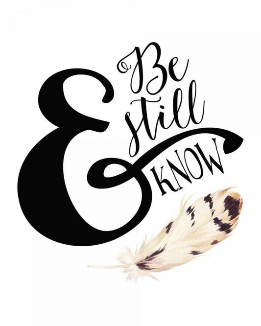 Be Still and Know Feather White Modern Wood Framed Art Print with Double Matting by Moss, Tara