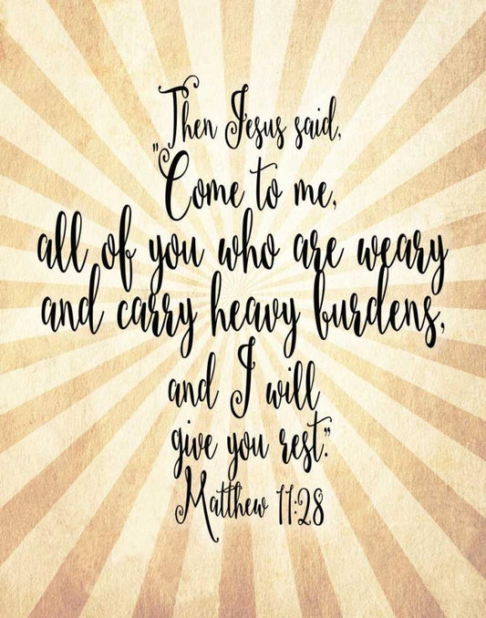 Matthew 11-28 come to Me White Modern Wood Framed Art Print with Double Matting by Moss, Tara