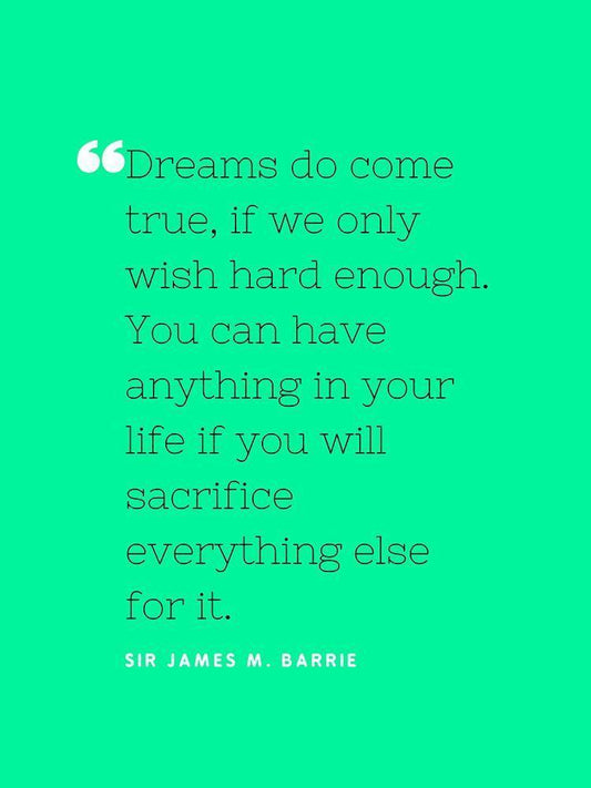 Sir James M. Barrie Quote: Dreams do Come True White Modern Wood Framed Art Print with Double Matting by ArtsyQuotes