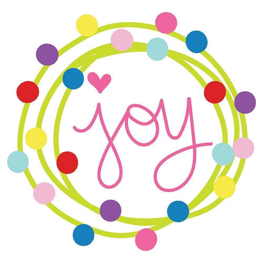 Joy Wreath White Modern Wood Framed Art Print with Double Matting by Dicks, Stephanie
