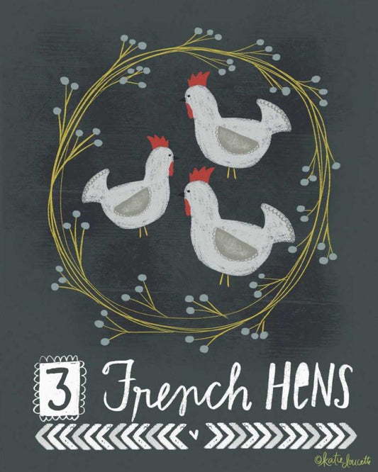 3 French Hens White Modern Wood Framed Art Print with Double Matting by Doucette, Katie