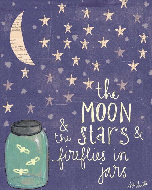 Moon Stars Fireflies White Modern Wood Framed Art Print with Double Matting by Doucette, Katie
