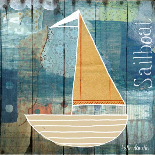 Sailboat Collage White Modern Wood Framed Art Print with Double Matting by Doucette, Katie