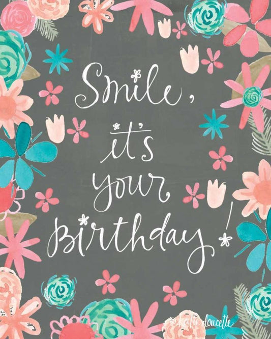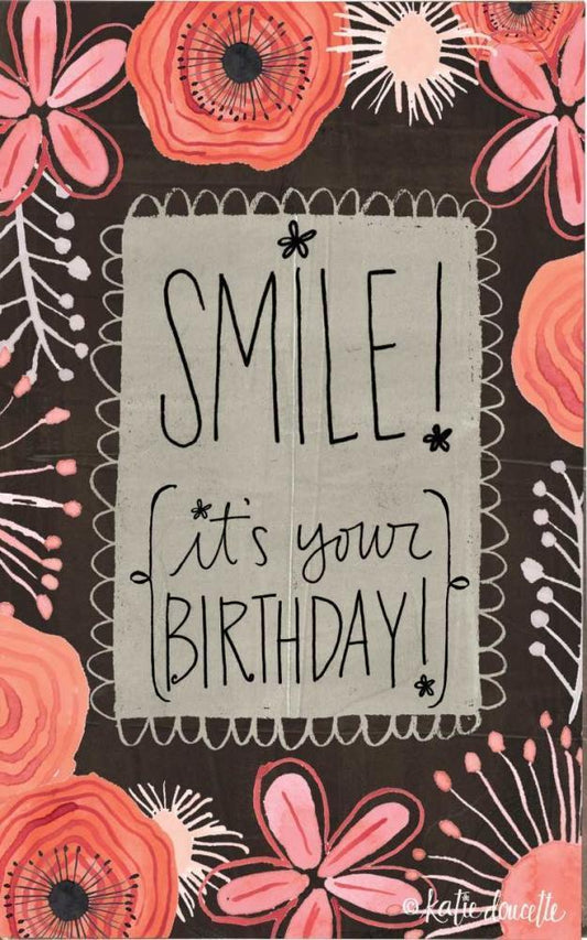 Smile Its Your Birthday White Modern Wood Framed Art Print with Double Matting by Doucette, Katie