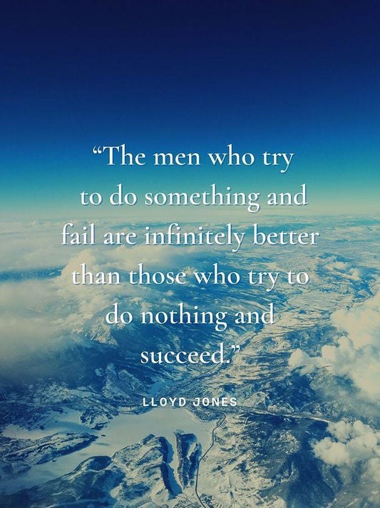 Lloyd Jones Quote: The Men Who Try White Modern Wood Framed Art Print with Double Matting by ArtsyQuotes