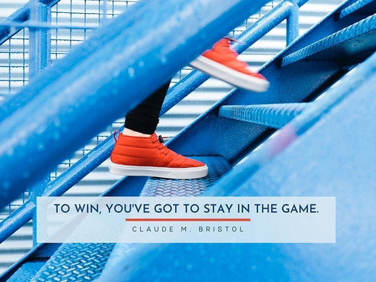 Claude M. Bristol Quote: Stay in the Game White Modern Wood Framed Art Print with Double Matting by ArtsyQuotes