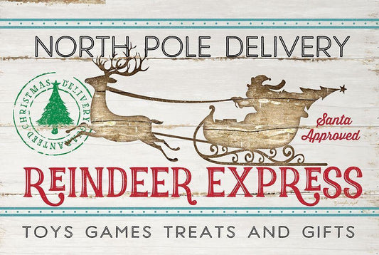 Reindeer Express White Modern Wood Framed Art Print with Double Matting by Pugh, Jennifer