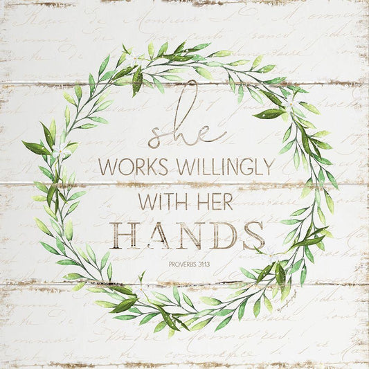 She Works Willingly White Modern Wood Framed Art Print with Double Matting by Pugh, Jennifer