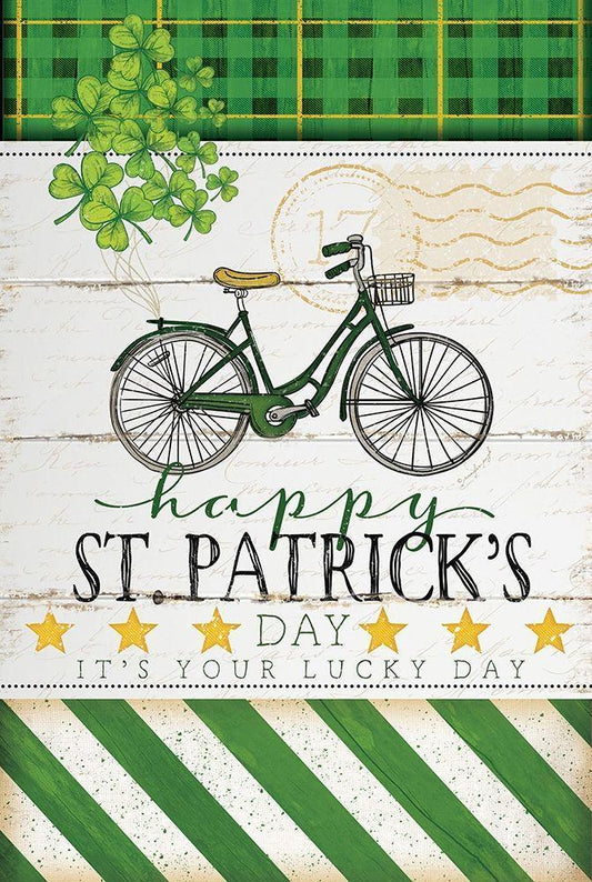 Happy St. Patricks Bike White Modern Wood Framed Art Print with Double Matting by Pugh, Jennifer