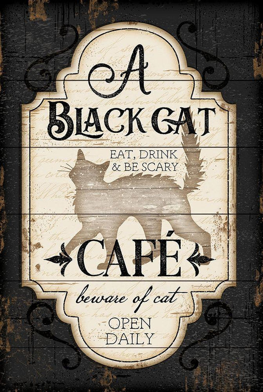 Black Cat Café White Modern Wood Framed Art Print with Double Matting by Pugh, Jennifer
