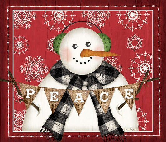 Peace Snowman White Modern Wood Framed Art Print with Double Matting by Pugh, Jennifer