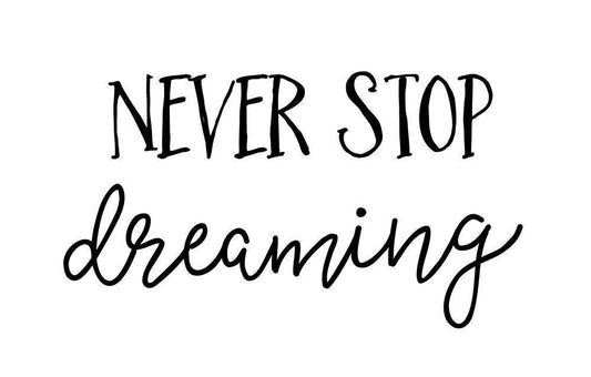 Never Stop Dreaming White Modern Wood Framed Art Print with Double Matting by Pugh, Jennifer