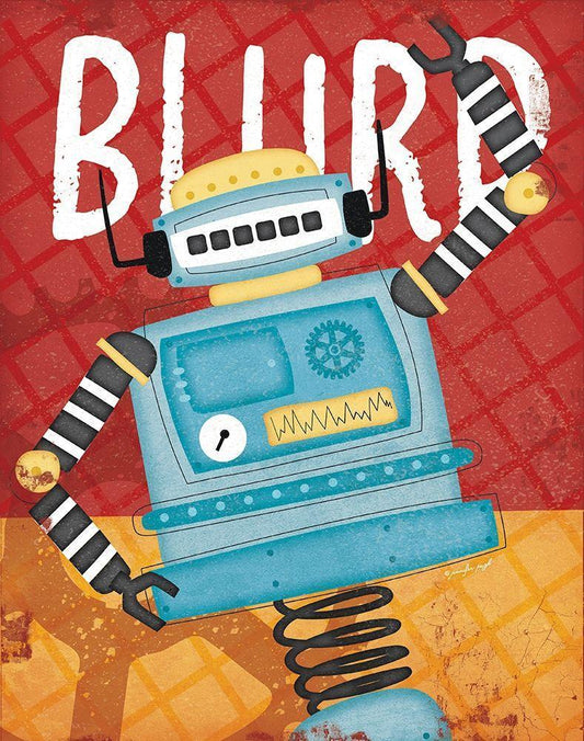 Fun Bot White Modern Wood Framed Art Print with Double Matting by Pugh, Jennifer