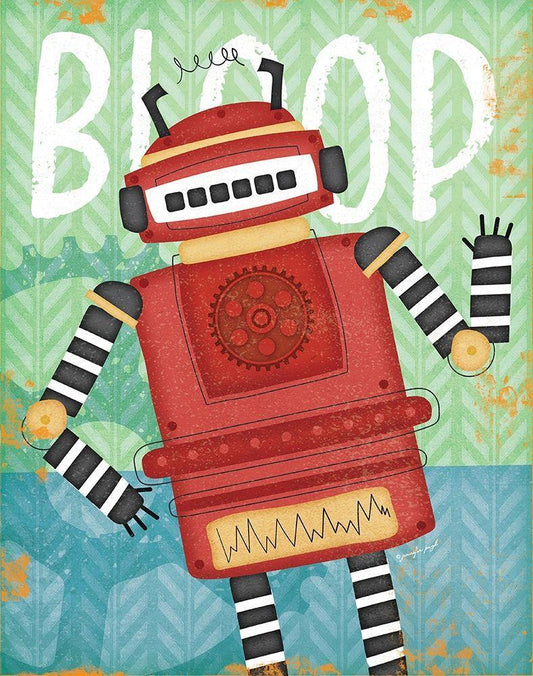 Boop Bot White Modern Wood Framed Art Print with Double Matting by Pugh, Jennifer