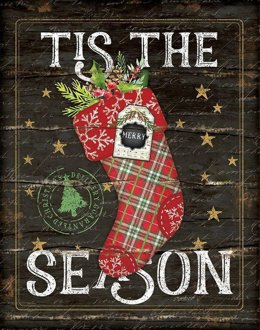 Tis the Season Stocking White Modern Wood Framed Art Print with Double Matting by Pugh, Jennifer