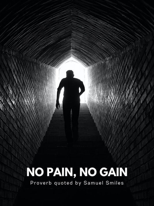 Samuel Smiles Quote: No Pains White Modern Wood Framed Art Print with Double Matting by ArtsyQuotes
