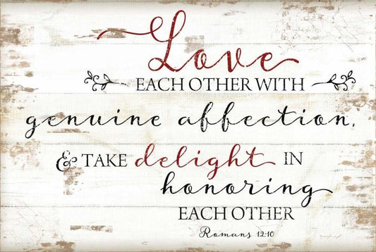 Romans 12:10 White Modern Wood Framed Art Print with Double Matting by Pugh, Jennifer
