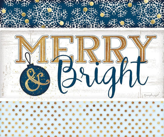 Merry and Bright Blue White Modern Wood Framed Art Print with Double Matting by Pugh, Jennifer
