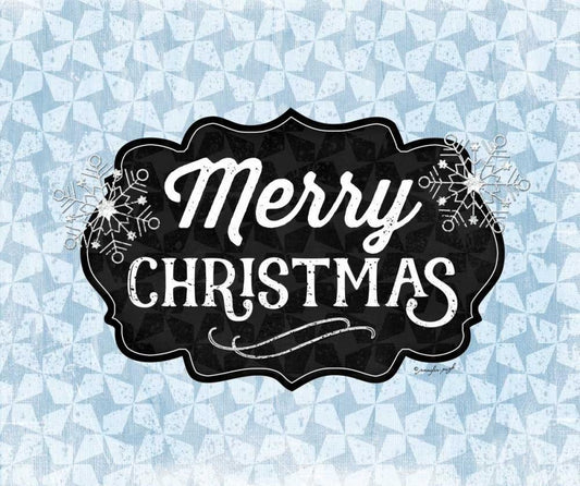 Merry Christmas Blue White Modern Wood Framed Art Print with Double Matting by Pugh, Jennifer