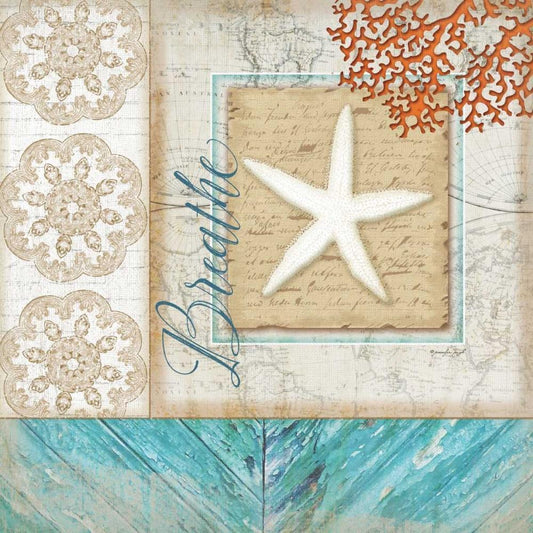 Coastal Starfish White Modern Wood Framed Art Print with Double Matting by Pugh, Jennifer