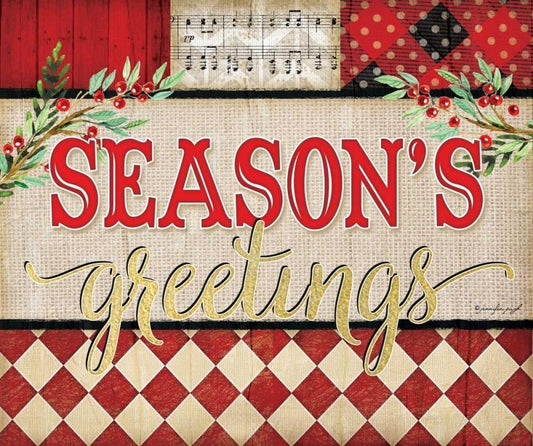 Seasons Greetings Plaid White Modern Wood Framed Art Print with Double Matting by Pugh, Jennifer