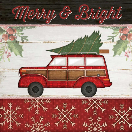Merry Christmas Truck White Modern Wood Framed Art Print with Double Matting by Pugh, Jennifer