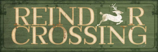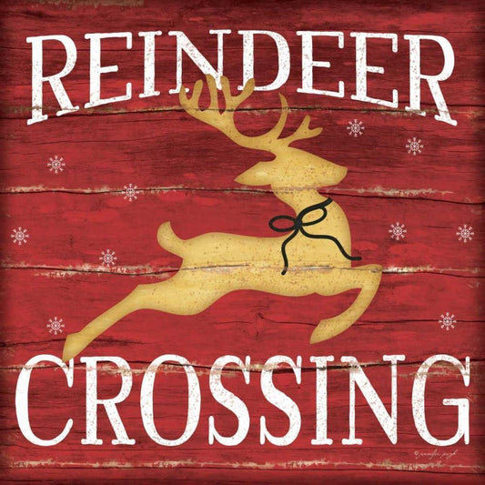 Reindeer Crossing Christmas White Modern Wood Framed Art Print with Double Matting by Pugh, Jennifer