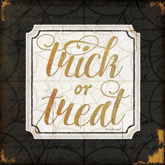 Trick or Treat Gold White Modern Wood Framed Art Print with Double Matting by Pugh, Jennifer