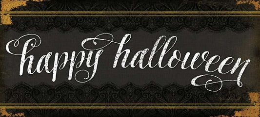 Happy Halloween White Modern Wood Framed Art Print with Double Matting by Pugh, Jennifer