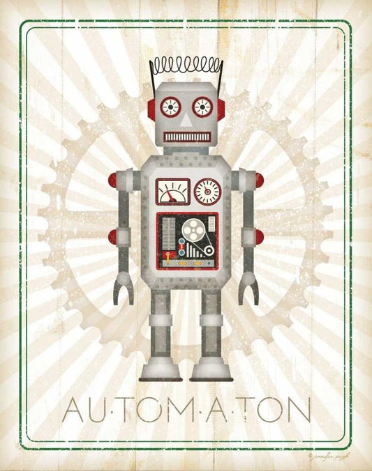 Retro Robot II White Modern Wood Framed Art Print with Double Matting by Pugh, Jennifer