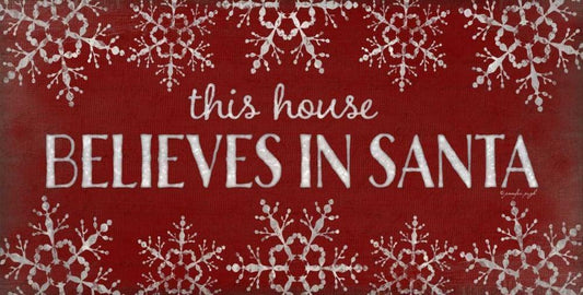 This House Believes in Santa White Modern Wood Framed Art Print with Double Matting by Pugh, Jennifer