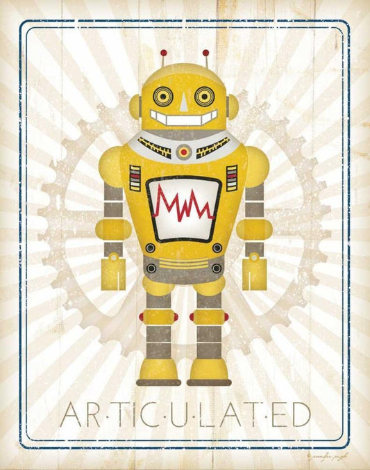 Retro Robot III White Modern Wood Framed Art Print with Double Matting by Pugh, Jennifer
