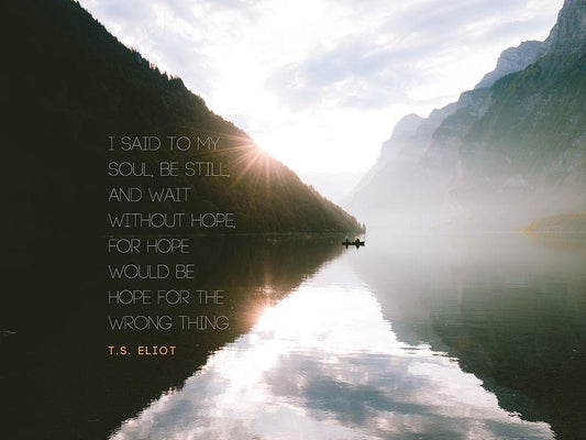 T.S. Eliot Quote: Be Still White Modern Wood Framed Art Print with Double Matting by ArtsyQuotes