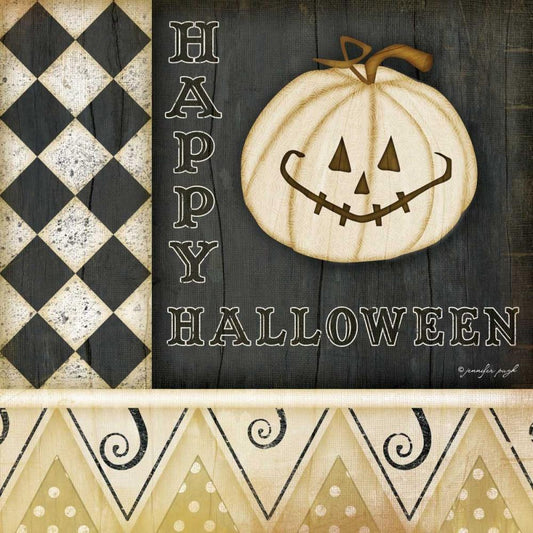 Happy Halloween White Modern Wood Framed Art Print with Double Matting by Pugh, Jennifer