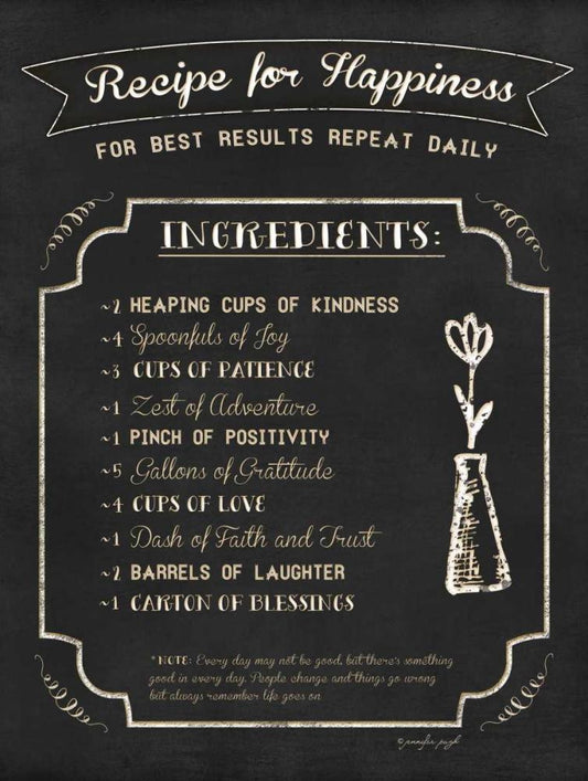 Recipe for Happiness White Modern Wood Framed Art Print with Double Matting by Pugh, Jennifer
